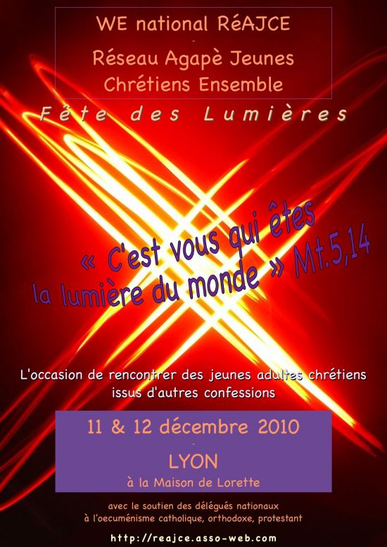 Réseau Agapè JeunesChrétiens Ensemble (réseau national de jeunes adultes de toutes Eglises http://reajce.asso-web.com/)
